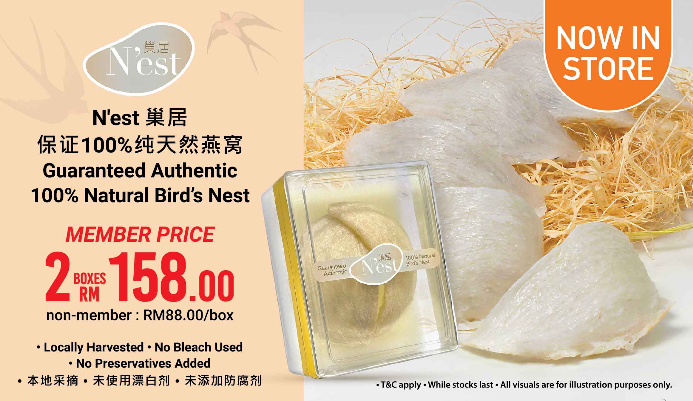 Guaranteed 100% Authentic Natural Bird’s Nest, locally harvested with no bleach and no preservatives.